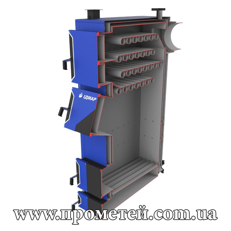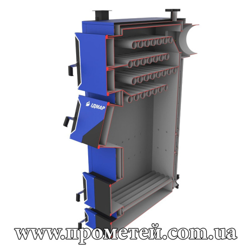 Ідмар ЖК-120 – котел довготривалого горіння з розвиненим теплообмінником, об’ємною топкою і водонаповненими колосниками. Призначений для опалювання всіх типів приміщення площею до 1200 м2.