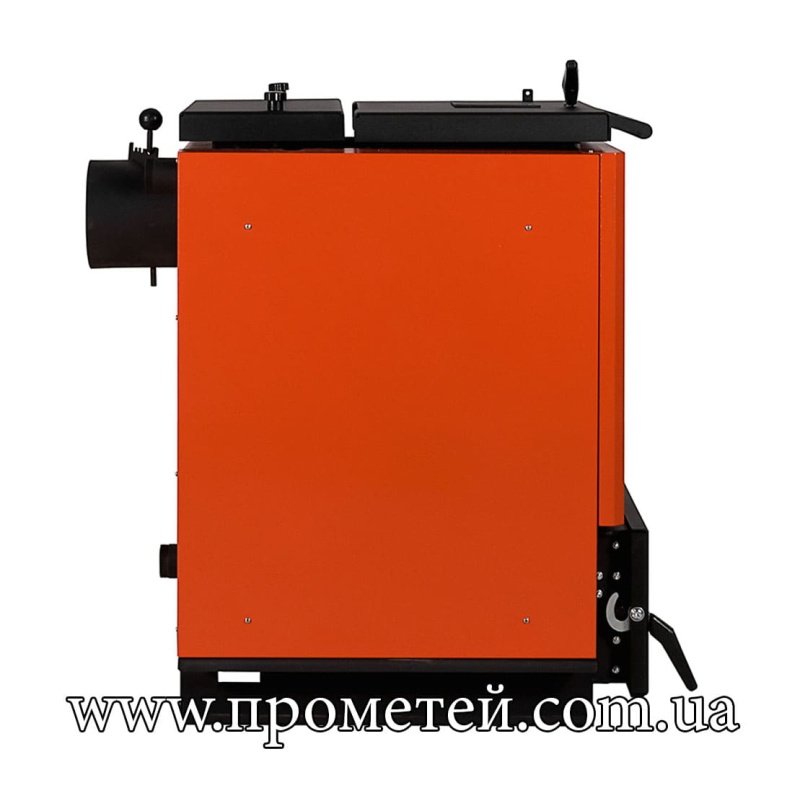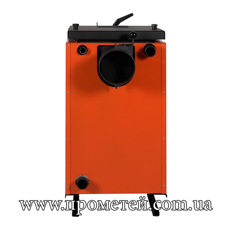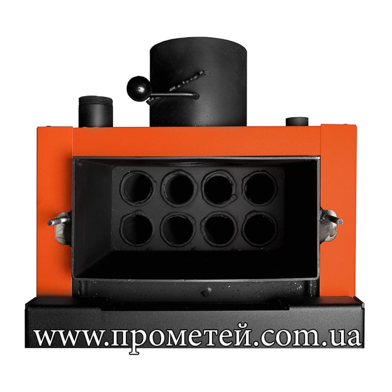 Працює на твердому паливі – дровах, вугіллі, паливних брикетах.