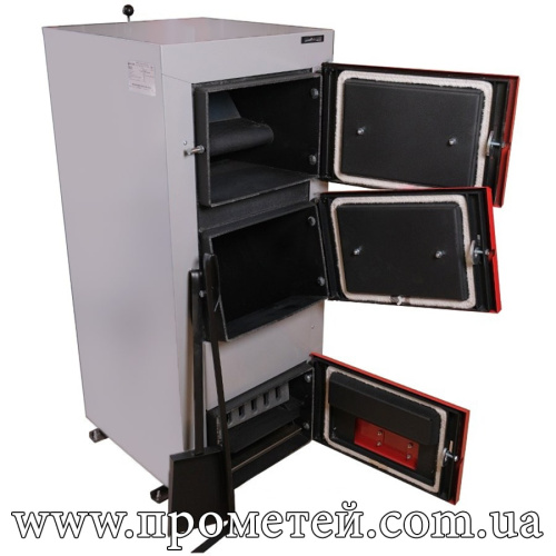 Котел виготовлений із якісної, стійкої до високих температур сталі 6 мм. Облицьований сталевим кожухом, на поверхню якого нанесено міцне порошкове покриття. Воно запобігає іржавінню металу і довго зберігає свій початковий вигляд. Топка збільшеного обсягу забезпечує до 6-10 годин роботи на одному завантаженні.