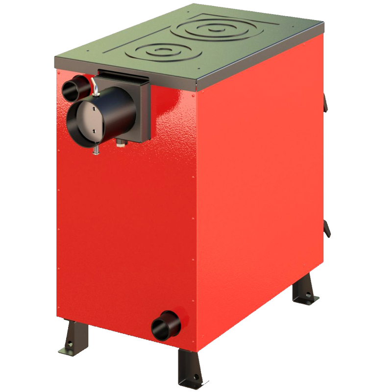 - Чавунна варильна поверхня – верхня частина котла оснащена масивною чавунною плитою з розбірними конфорками (кільцями) різного діаметра – це дозволяє готувати їжу, розігрівати страви та кип'ятити воду безпосередньо від тепла згоряння дров, що суттєво економить газ та електрику і рятує під час аварійних відключень.