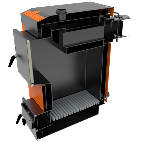 - Збільшений об'єм камери згоряння – дозволяє завантажувати велику кількість палива за один раз, забезпечуючи тривалість безперервного горіння від 6 до 12 годин; це звільняє користувача від необхідності часто відвідувати котельню, особливо в нічний час.