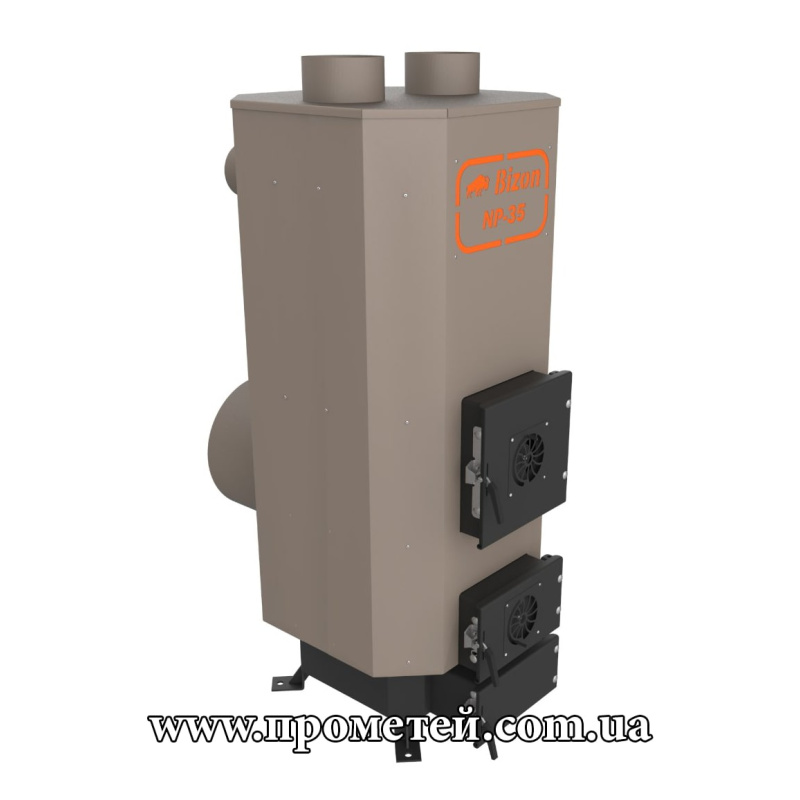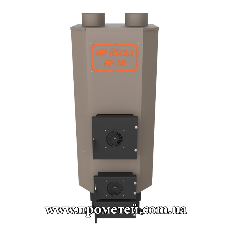 Теплогенератор на твердому паливі Bizon NP-35 – простий у монтажі та експлуатації опалювальний агрегат потужністю 35 кВт. На одному завантаженні працює від 12 до 60 годин. Використовується у системах повітряного опалення житлових будинків, виробничих та складських приміщень, СТО, торгових будівель, теплиць площею до 1500 м3.