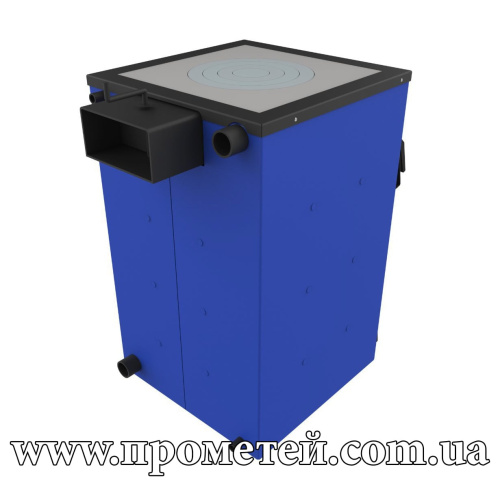 Працює на всіх видах твердого палива – дровах, вугіллі, брикетах, торфі, трісці та тирсі.