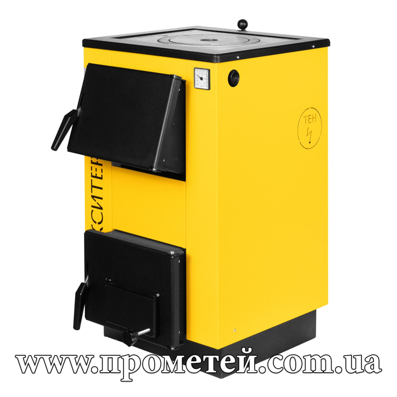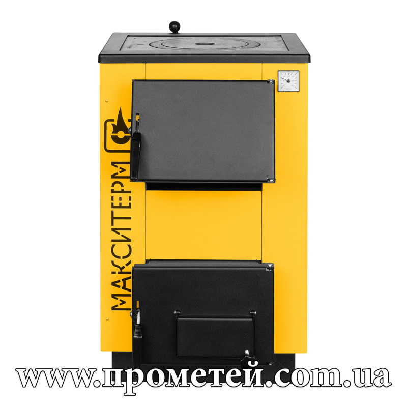 Макситерм Люкс 12П – опалювальний котел комбінованого типу. З варочною поверхнею, об'ємною камерою згоряння та можливістю встановлення електричного нагрівального елемента (ТЕНа). Орієнтований на опалення об'єктів до 120 м2.