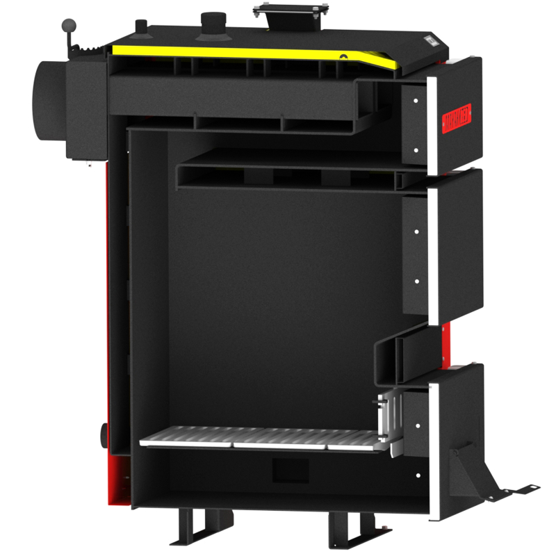 - Корпус котла виготовлений з жаростійкої сталі товщиною 5 мм, що забезпечує довговічність та витримує високі температури.
