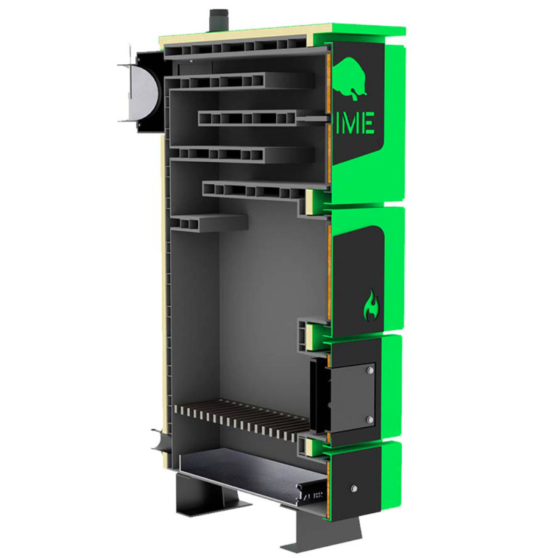 - Конструкція котлів тривалого горіння з лабіринтовим газоходом та ефективним допалюванням димових газів у чотириходовому теплообміннику