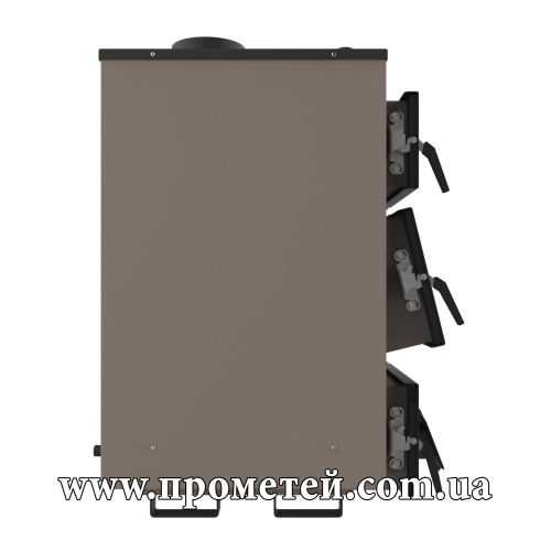 Выход дымохода расположен в верхней части котла, вертикально. Это позволяет немного сэкономить место для его установки или подсоединить к уже имеющейся трубе.