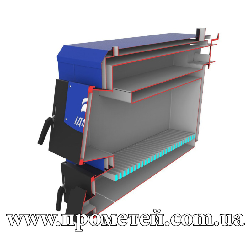 - Теплообменник горизонтальный. В виде одной полки, которая внутри омывается водой и отбирает тепло у выходящих дымовых газов.