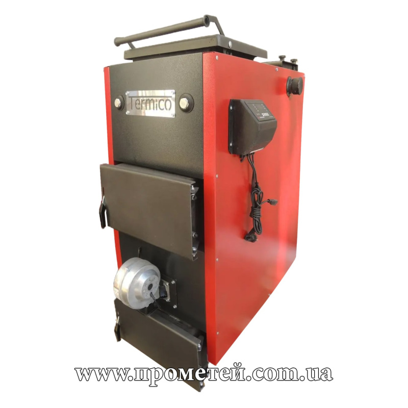 Управление котлом осуществляется с помощью механического терморегулятора, либо полноценной автоматики (контроллера и вентилятора наддува). Автоматика значительно повышает эффективность работы котла и сокращает расход топлива на 20-25%.