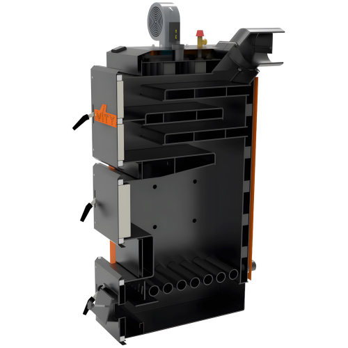- Автоматизация – котел полностью адаптирован под установку электронной автоматики* с нагнетательным вентилятором, дымососа или факельной пеллетной горелки. Это позволяет владельцу при необходимости совершенствовать систему отопления, подстраивая её под свои потребности в комфорте без необходимости покупать новый котел.