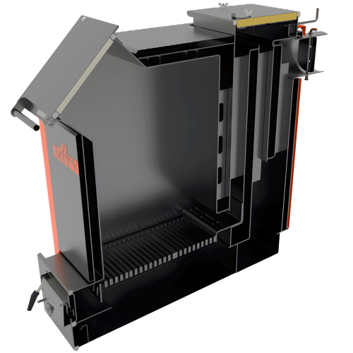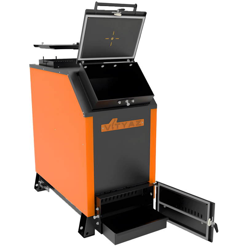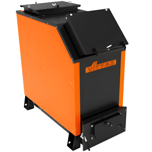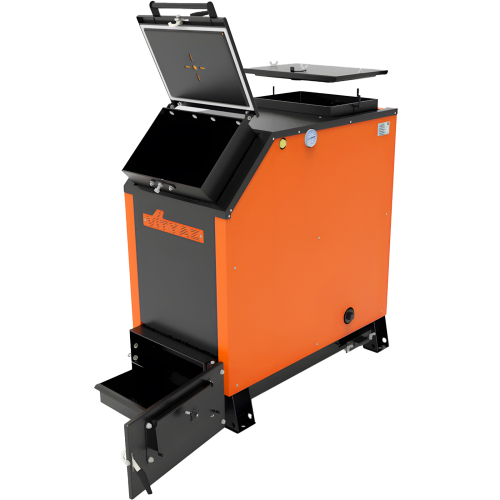 - Универсальность и всеядность (экономия на топливе) – котел позволяет сжигать дрова, отходы древесины, уголь различных типов, торф и разнообразные брикеты, идеально подходя для владельцев, желающих экономить на отоплении и использовать наиболее доступные виды энергоносителей.