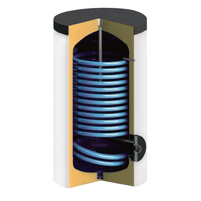 - Збільшений спіральний змійовик площею 3,7 м² – потужний теплообмінник спеціально спроектований для роботи з низькотемпературними джерелами тепла, що дозволяє значно швидше прогрівати воду та запобігає інтенсивному утворенню накипу.