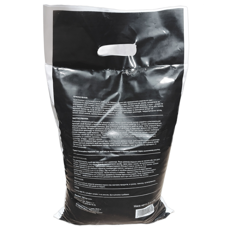 Засіб Ecodym для чищення димоходу 5 кг – це ефективний порошок для немеханічного видалення сажі, смолистих відкладень та нагару у котлах і димоходах. Застосовується як добавка до твердого палива та забезпечує високу якість очищення без механічного втручання. Підходить для всіх типів котлів і димоходів, печей, камінів тощо.